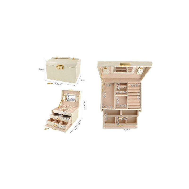 Ékszerdoboz - bézs, ékszer tároló, ékszeres láda, sminkes doboz