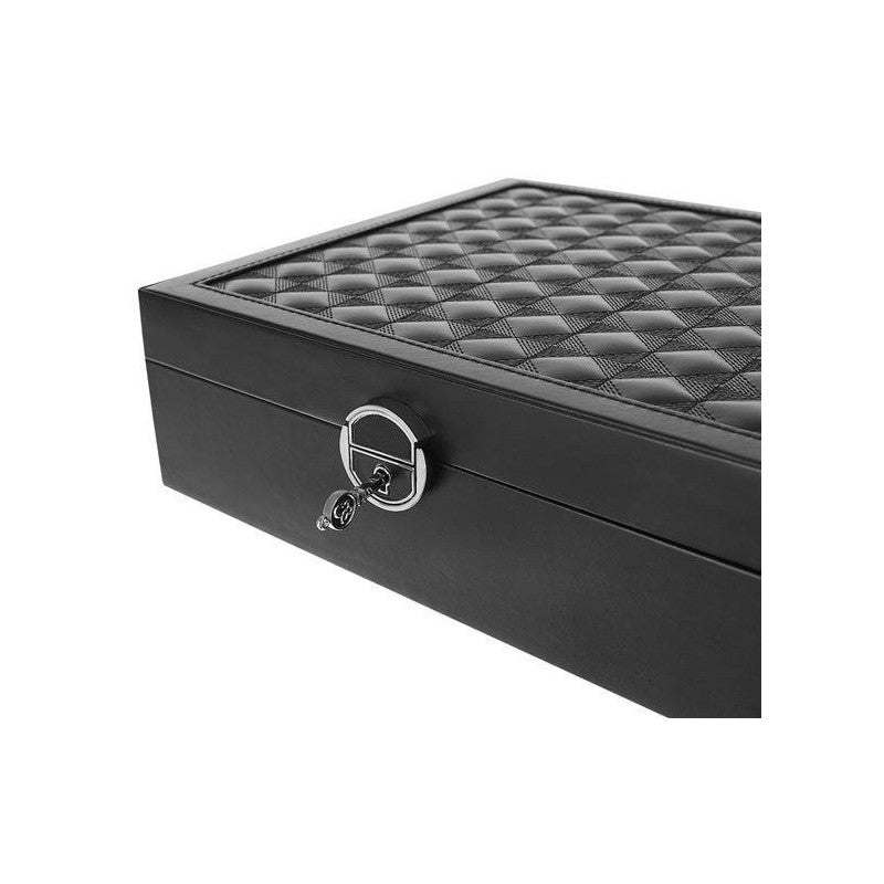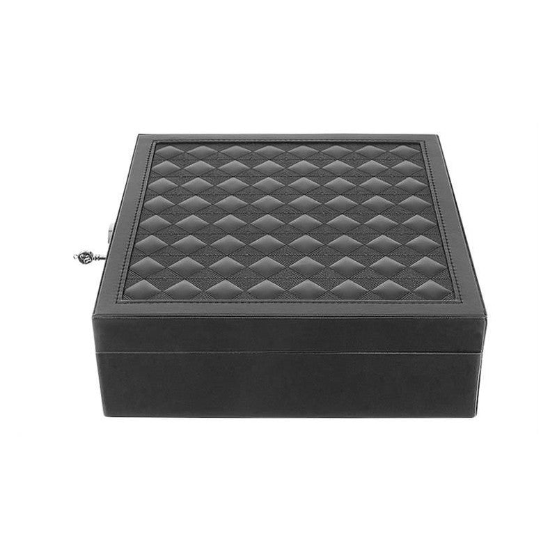 - A doboz alsó részében hat extra rekesz rejtőzik, valamint két külön betét órák vagy karkötők számára, és egy nagyobb, téglalap alakú rekesz a nagyobb kincseknek.