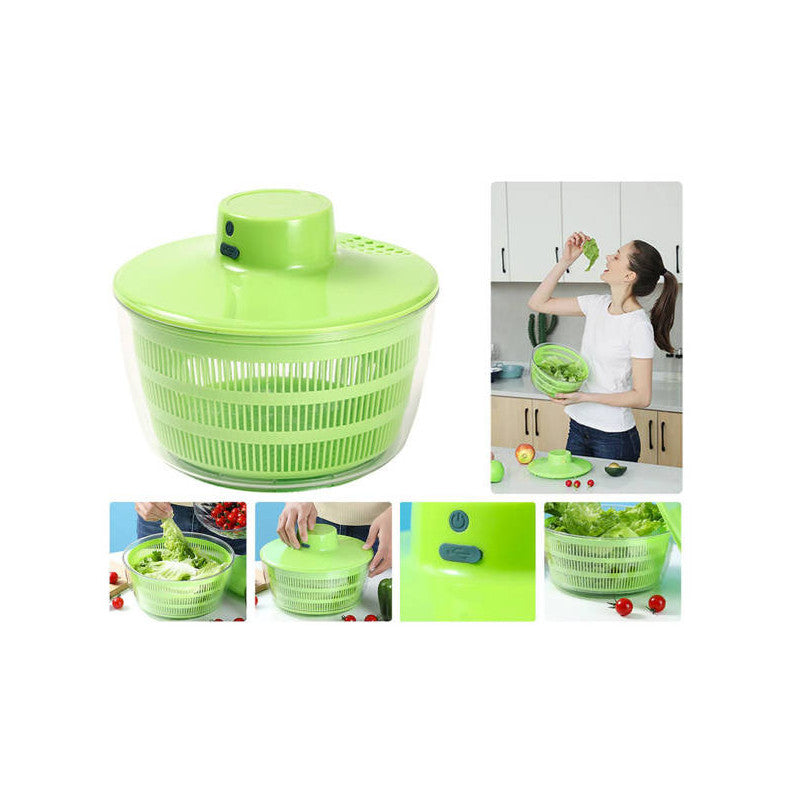 Ez az elektromos saláta centrifuga egy igazi must-have minden gasztrokalandor számára! Gyorsan és könnyedén száríthatod meg a salátádat és a friss fűszernövényeidet is ezzel a praktikus eszközzel. A centrifuga egy forgó mechanizmust használ, amit egy motor hajt meg. Egyszerűen csak nyomd meg a bekapcsoló gombot, és már indul is a móka! A centrifuga körülbelül 10 másodpercig pörgeti a zöldségeket, majd automatikusan lefékez. Nem kell sok erőfeszítést vagy időt beleölnöd a saláta szárításába!
