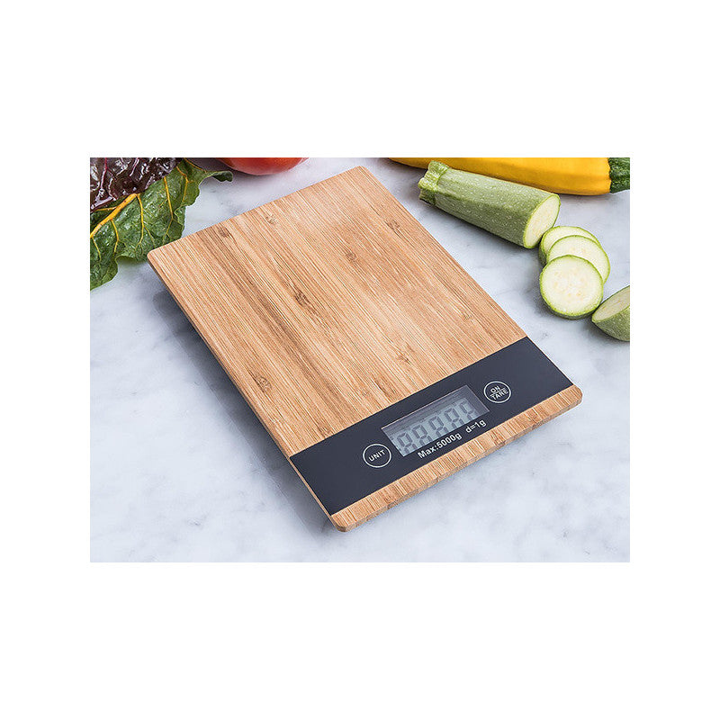 A konyhai mérleg elengedhetetlen minden konyhában, és eredeti designjének köszönhetően lenyűgöző dekorációs elemet teremt. A bambusz konyhai mérleg nagy és tiszta kijelzővel rendelkezik és intuitív gombokkal. A kijelző többek között információkat mutat az Überterhelésről és az alacsony akkumulátor töltöttségről. Emellett hasznos automatikus kikapcsolási funkcióval van felszerelve, így az mérleg álomba szenderül, ha nem használják. A mérleg bambusz felülete nagyon higiénikus és könnyen tisztítható, egyszerűen törölje át nedves ruhával.
