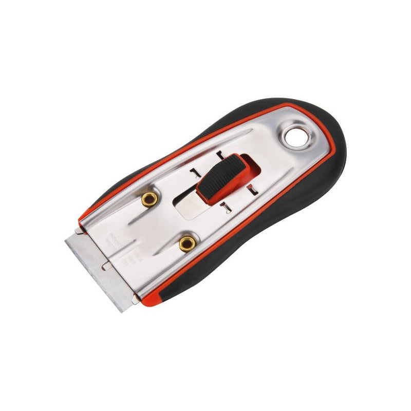 Az üvegkaparó ideálisan alkalmazható ablakok, üvegkerámia lapok és más sima felületek tisztításához. Fém szerkezetű éltartó. A penge könnyen és gyorsan cserélhető az üvegtisztítón. Nyomógomb (retesz) a penge manuális kihúzásához és betolásához.