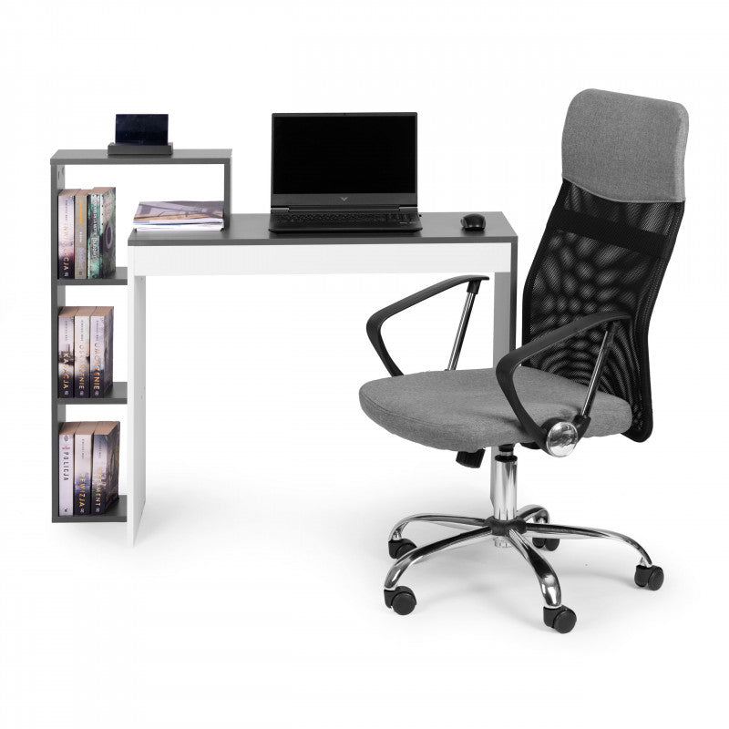 Fehér és szürke irodai számítógépasztal, íróasztal + könyvespolc 4 polccal