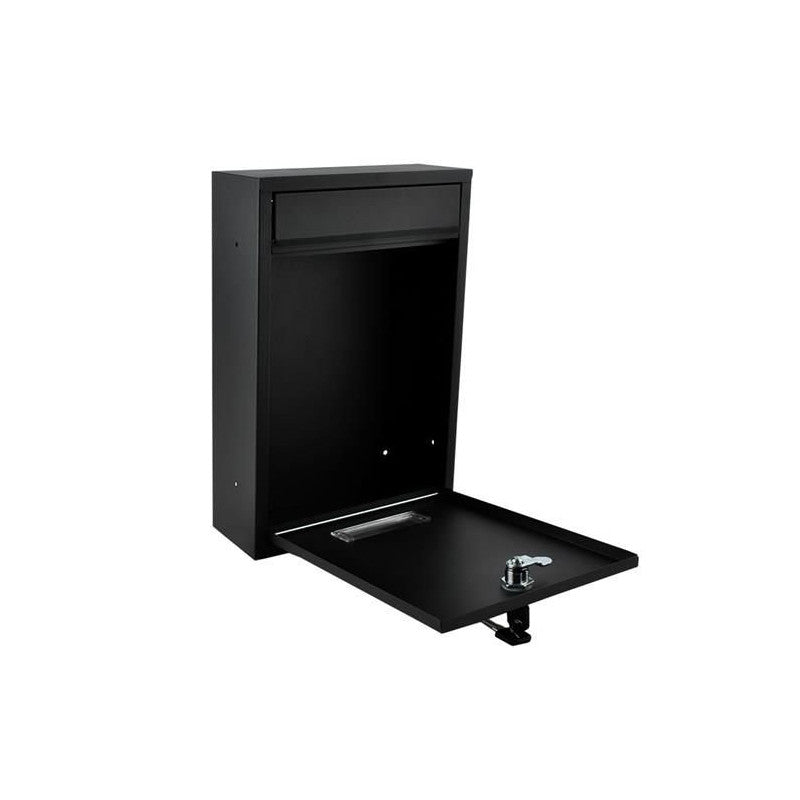 Fekete levélláda - modern design, falra szerelhető, postafiók, levelezőláda, kültéri, beltéri, alumínium, csomagküldés