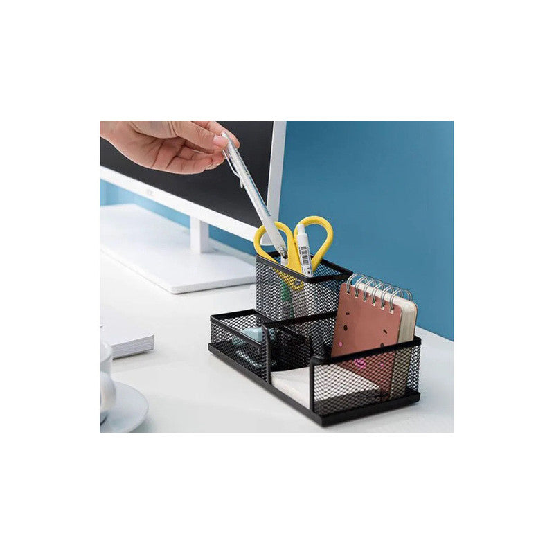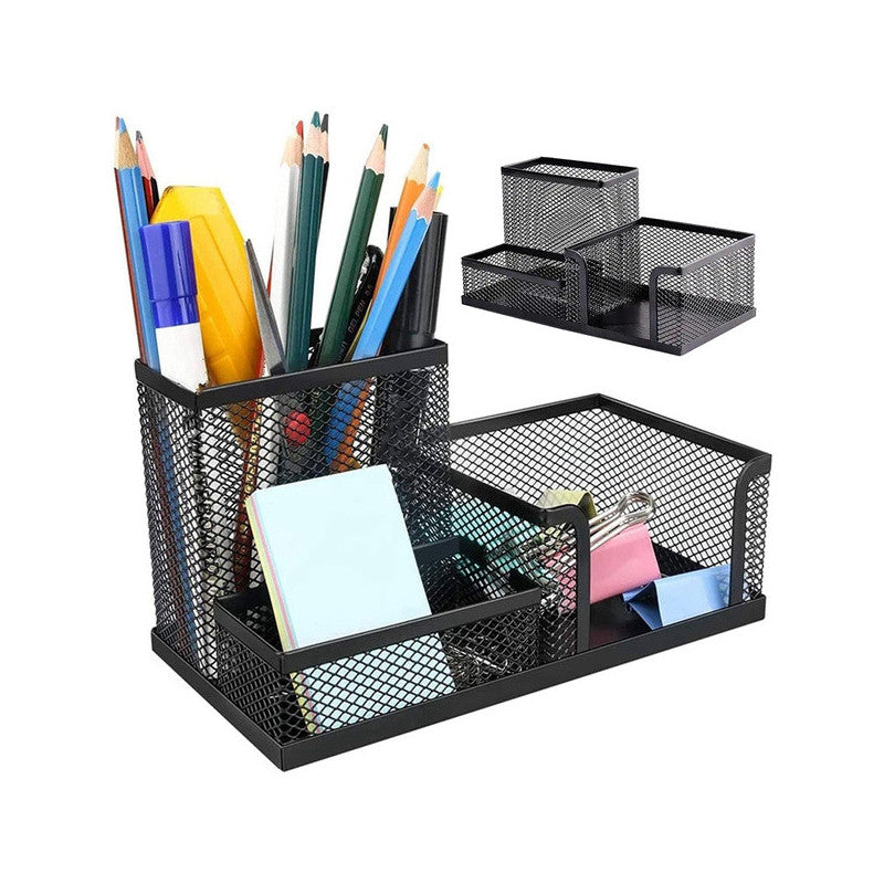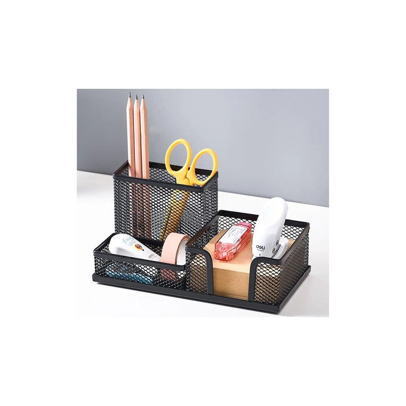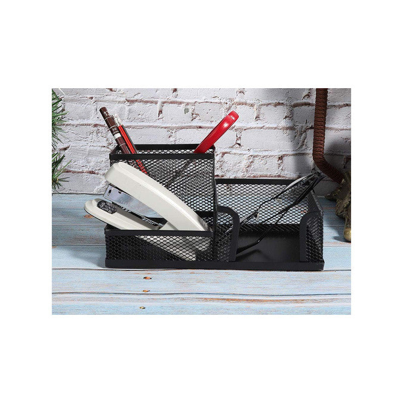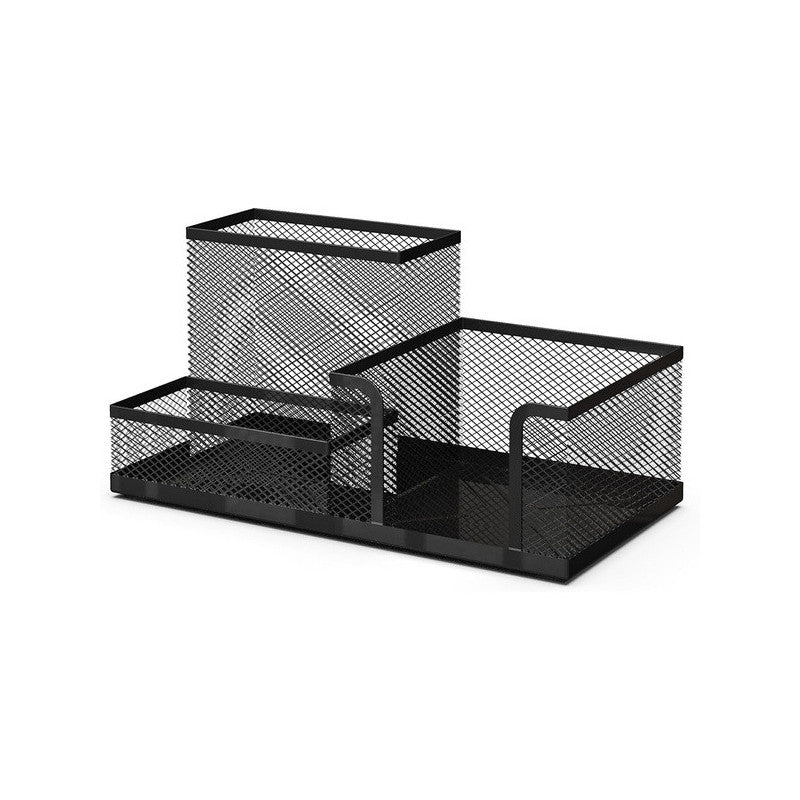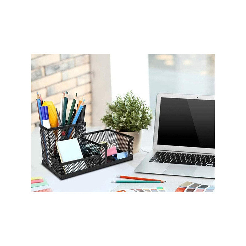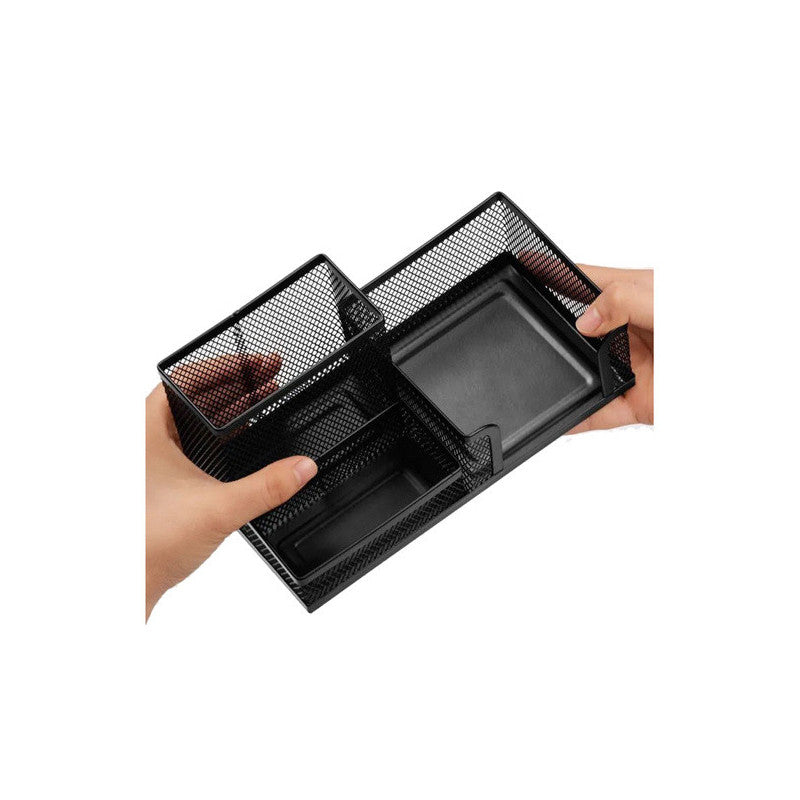 A fém irodai szervezővel minden rendben lesz a munkahelyeden vagy otthonodban! A három tágas rekesznek köszönhetően könnyedén rendezheted az összes irodai szükségletet. Ez azt jelenti, hogy minden kéznél lesz, így könnyebben tudsz koncentrálni a munkádra, és növelheted a hatékonyságodat. A szervező fekete színe elegáns és modern érintést ad, bármilyen stílusú irodába illik. Nem csak egy munkaeszköz, hanem egy dekoratív elem is, amely szépséget ad az íróasztaladhoz.