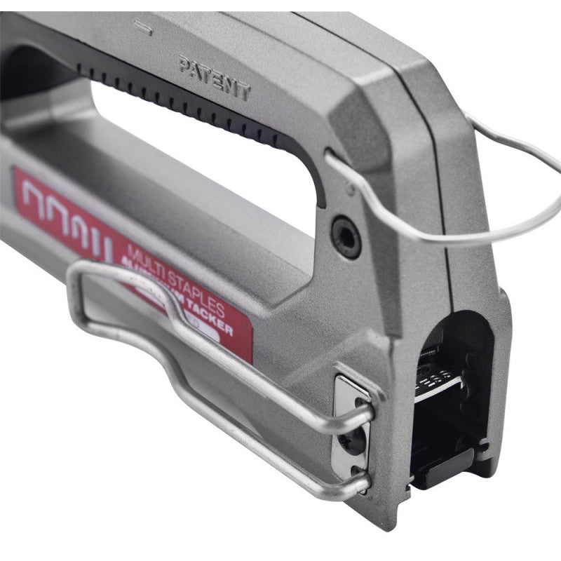 A tűzőgépnél az ütés ereje könnyedén állítható.Ez a professzionális tűzőgép teljes mértékben fémből készült, (a ház alumíniumból) jó ellenálló képességű szerkezet a kapcsok hosszabb időn keresztül egy kézzel történő belövéséhez. Gumirozott markolat a kényelmes, csúszásmentes megfogáshoz.