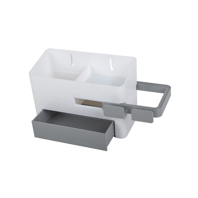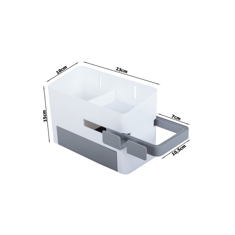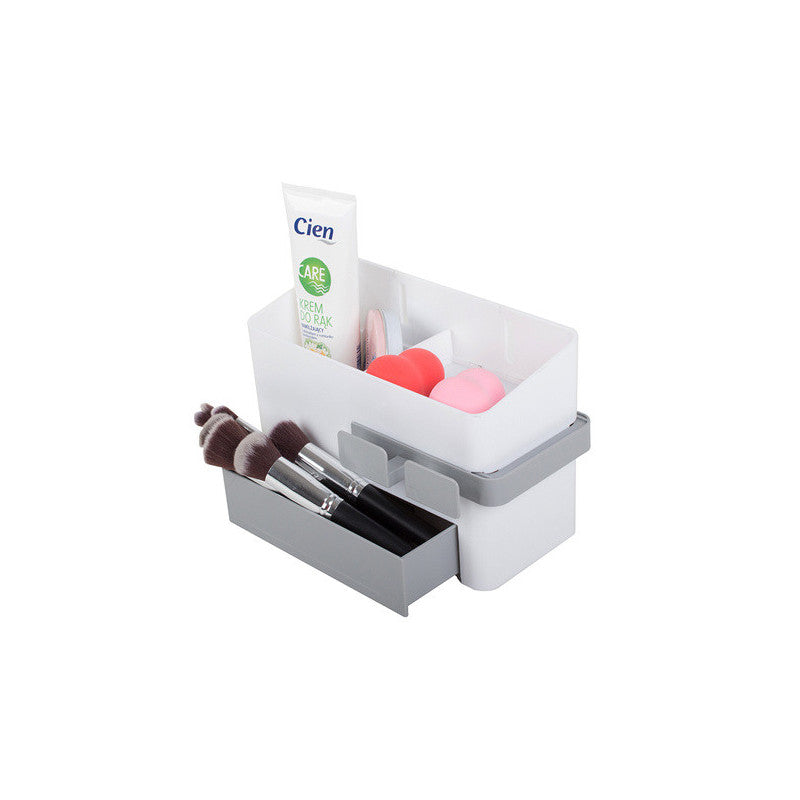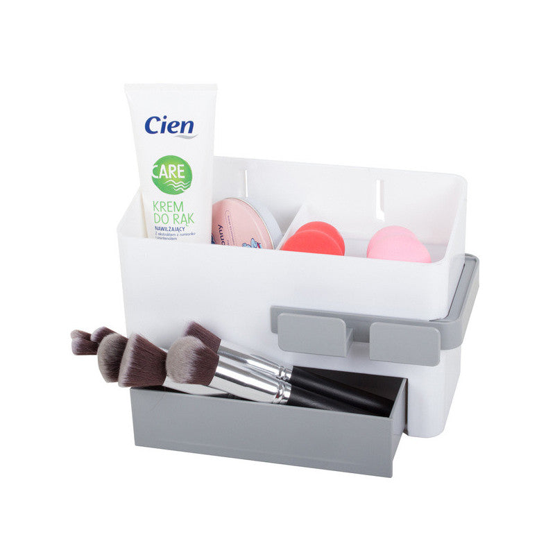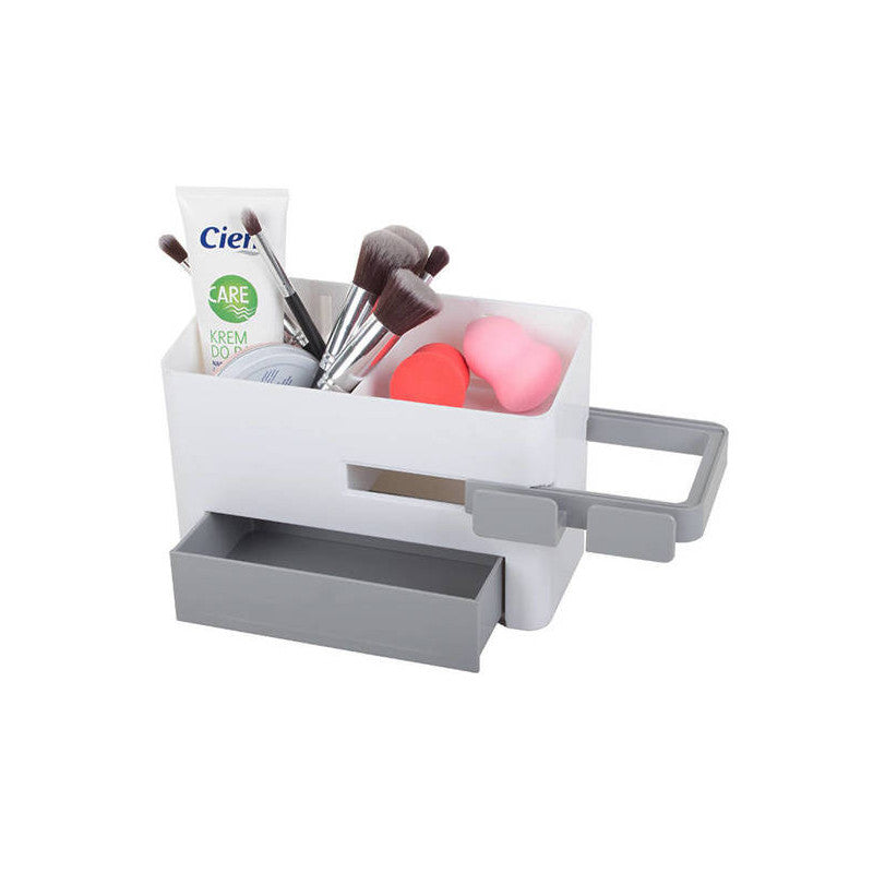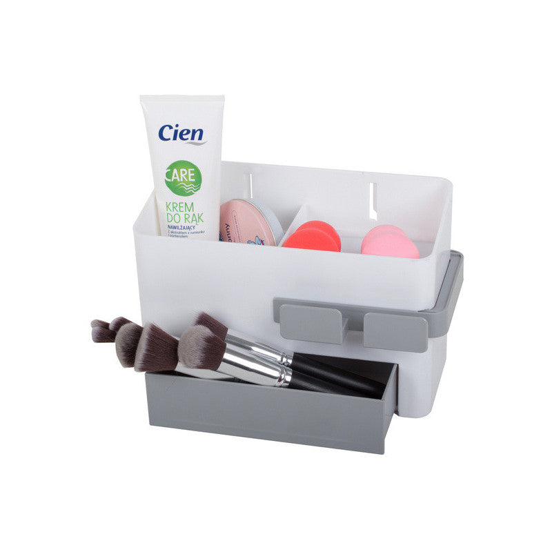 A univerzális fürdőszobai szervező az ideális megoldás a fürdőszobád rendben tartására. Az szervezőben van egy tartály egy rekeszzel, egy fiókkal és egy kihúzható szárító tartóval. Az egyszerű és gyors szervező telepítése biztosított a mellékelt erős rögzítő matricával.