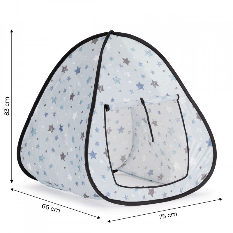 A sátor önmagától összecsukódó szerkezettel rendelkezik, csak vedd ki a csomagolásból és a sátor magától kinyílik a maximális méretére. A anyag lehetővé teszi a játékot a szabadban, a kertben vagy a teraszon.