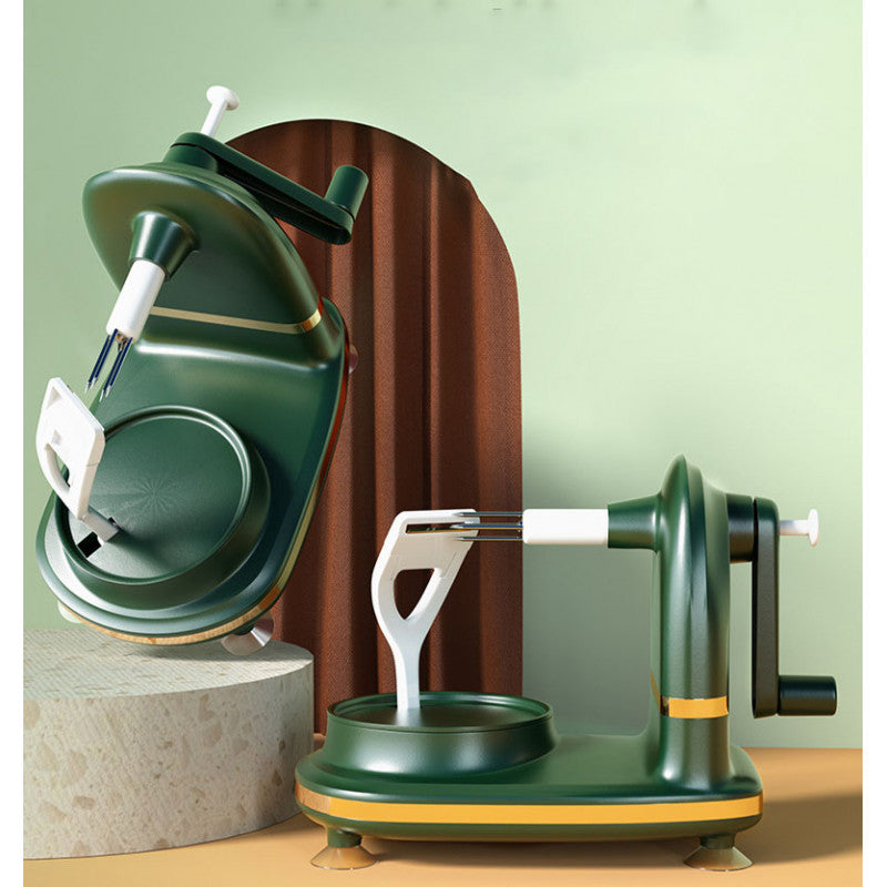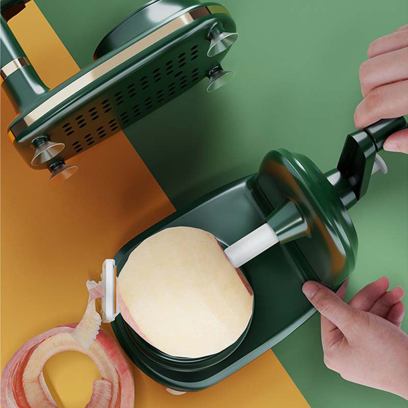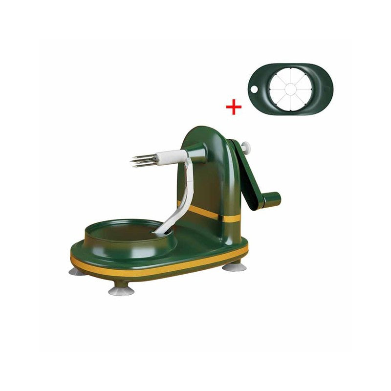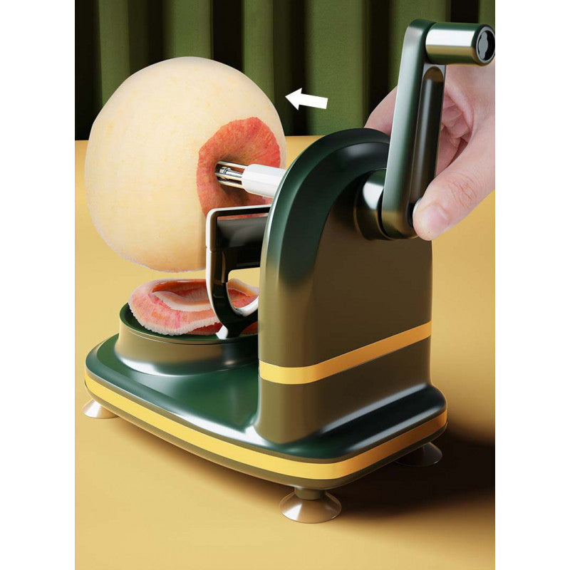 Csak helyezz egy almát a vágóeszközre, majd tekerd a kart óramutató járásának megfelelően kb. 5 másodpercig. Miután lekerült a gyümölcs héja, csak nyomd meg a gombot, és kész is.