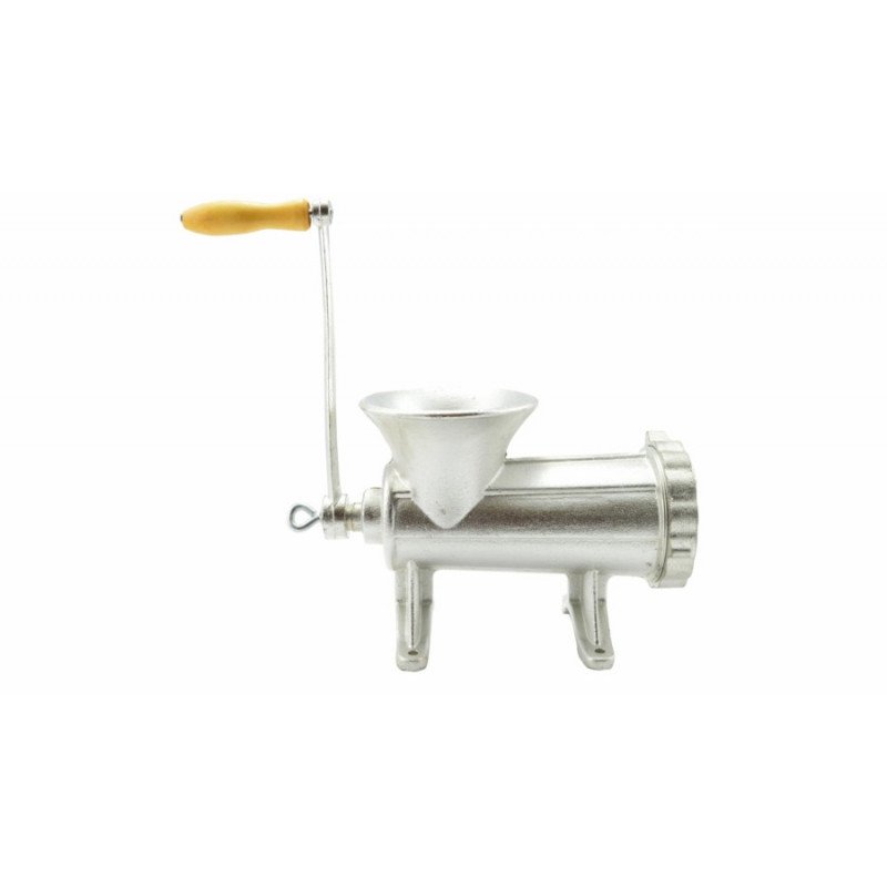 Ez a húsdaráló a kiváló minőségű öntöttvasból és fából készült, így tartós és megbízható. A csomag tartalmaz egy darab vázat, egy tekerőnyél, egy tekerőnyelet rögzítő csavart, egy csigát, egy kést, egy tárcsát és egy záró gyűrűt. Minden eszköz a legjobb minőségű anyagokból van készítve, hogy hosszú távon is használható legyen.