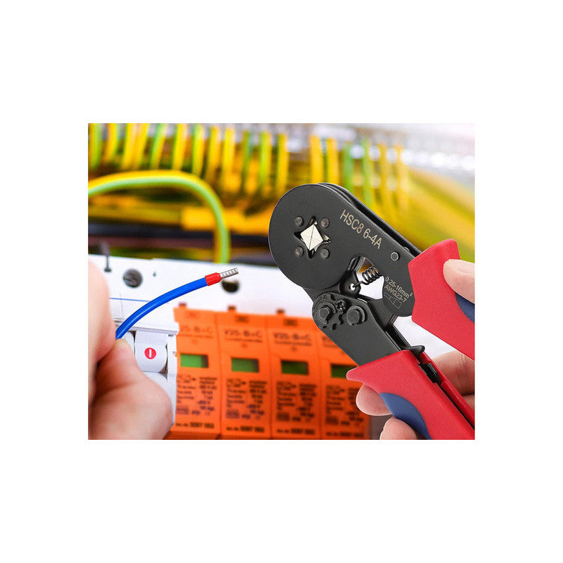 A Kábelnyomó Prés egy sokoldalú eszköz, amely kezeli a kábel keresztmetszetét 0,25mm²-től 10mm²-ig. Legyen szó otthoni vagy szakmai elektromos projektekről, ez az eszköz könnyedén kezeli a különböző kábeltípusokat. Az ergonomikus kialakítású fogantyújával és precíz nyomó mechanizmusával a mi présünk biztosítja a megbízható és tartós csatlakozásokat. Biztos lehetsz benne, hogy a kábelcsatlakozásaid biztonságosak és megbízhatóak.