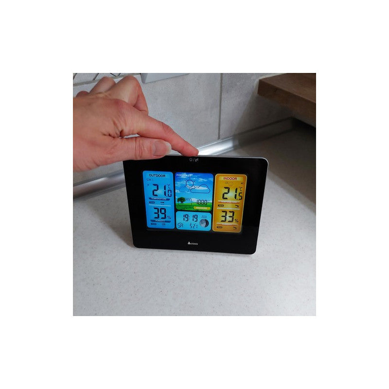 Ez a modern, multifunkcionális időjárás állomás nagy és tiszta LCD kijelzővel rendelkezik, ami intuitív és könnyen használható. Tökéletes választás bármely otthonba, lakásba vagy irodába. Az állvány segítségével bárhová elhelyezheted: íróasztalra, asztalra, hűtőre vagy polcra. Diszkrét megjelenésének köszönhetően tökéletesen illeszkedik bármilyen belső térbe.