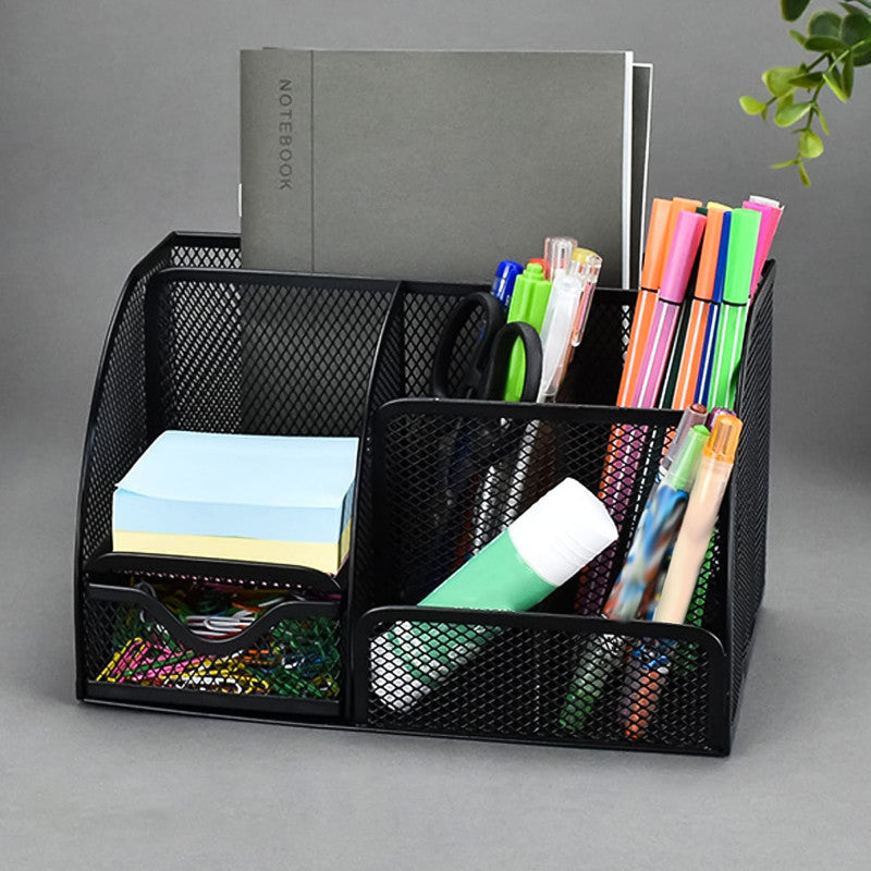 Irodai szervező, fém íróasztali eszköz tároló, 6 rekeszes
