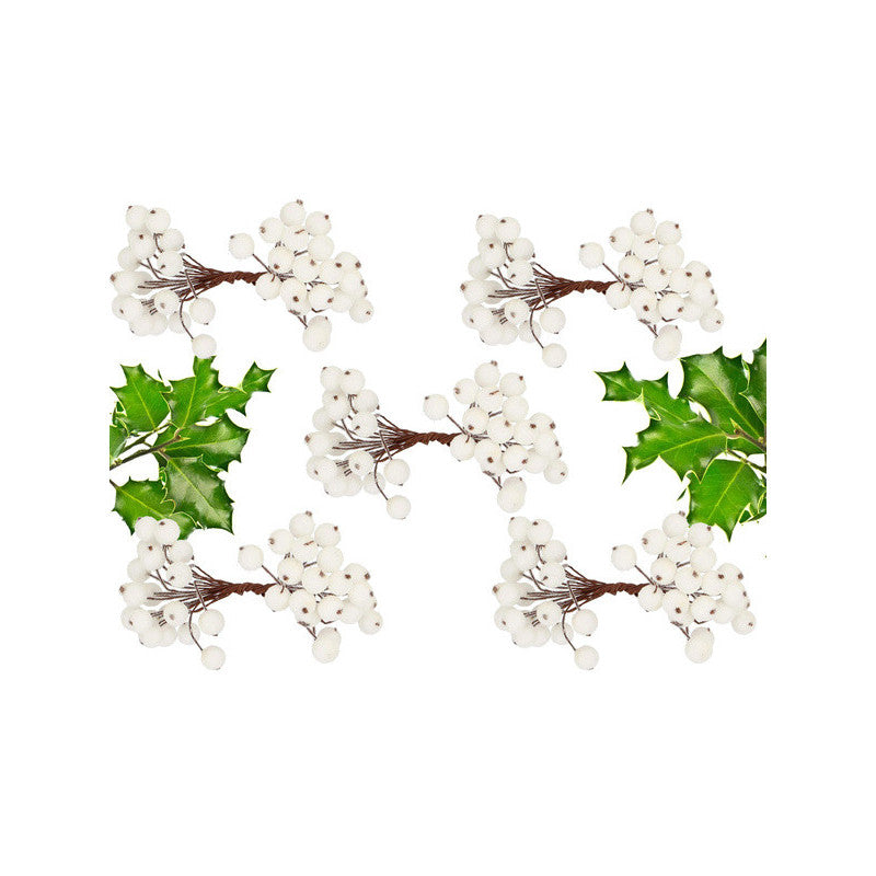 Jeges madárbogyó fehér karácsonyi dekoráció 5 db