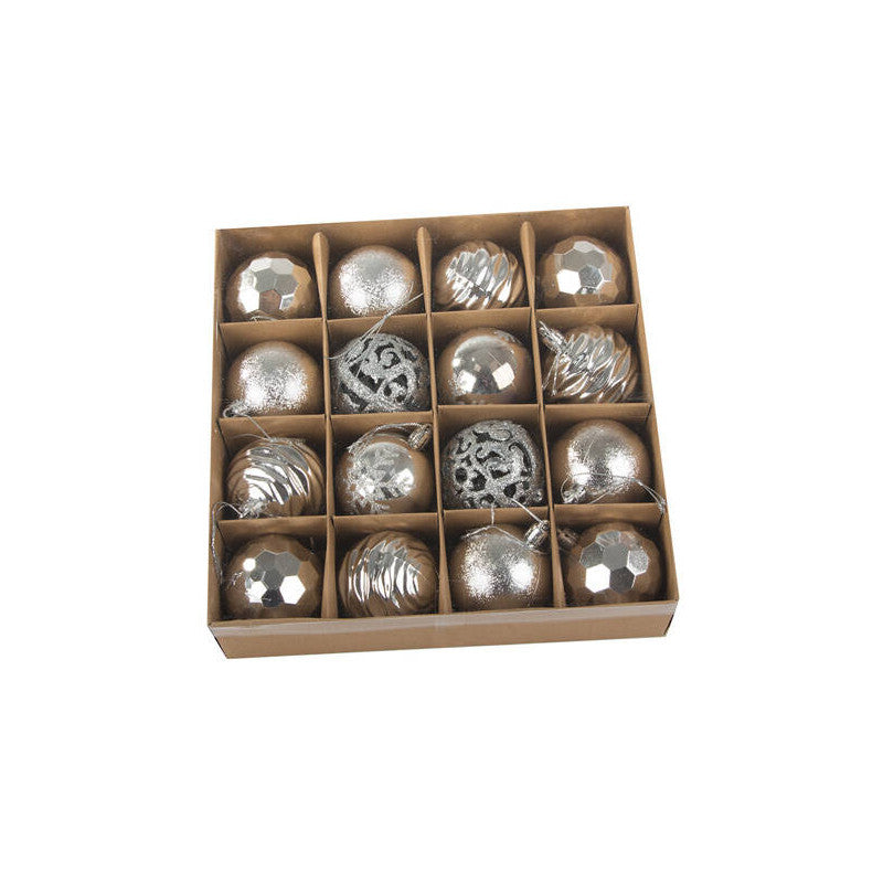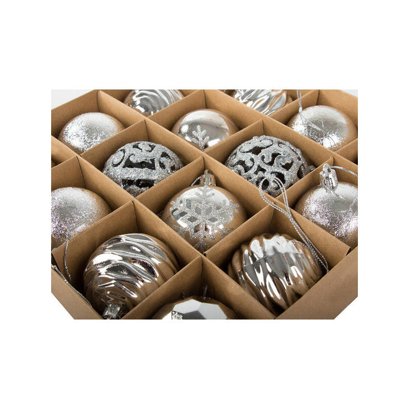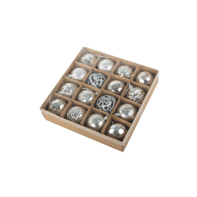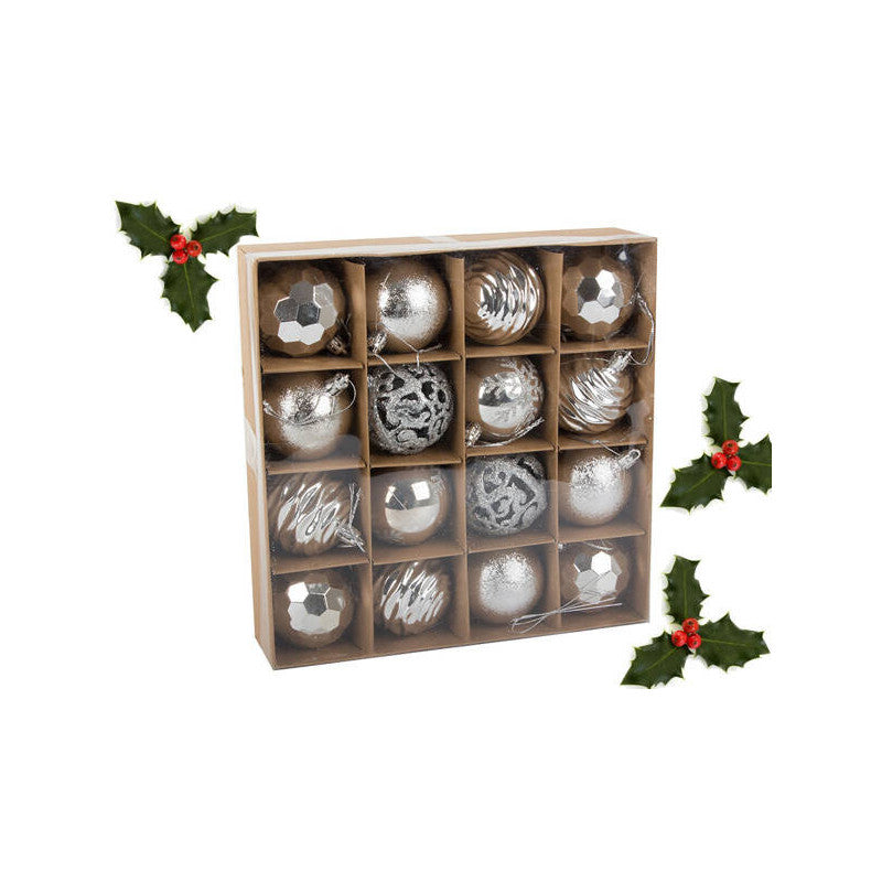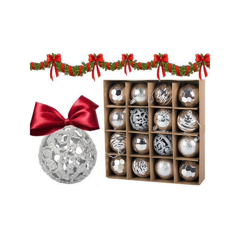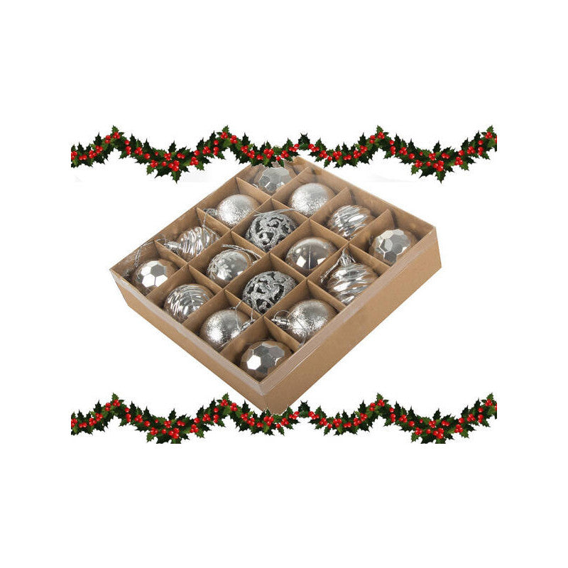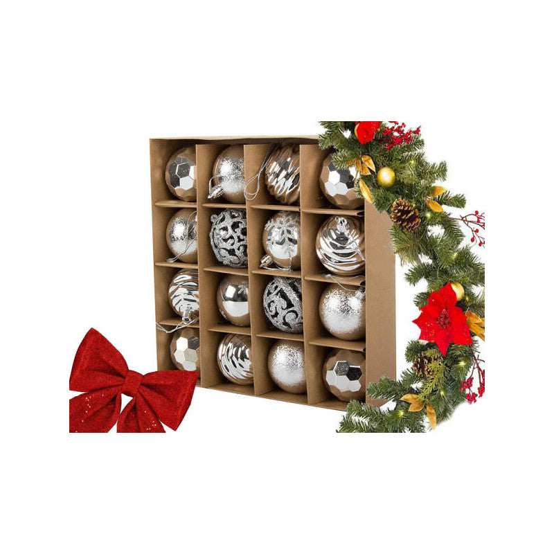 Termékleírás: ???? A Karácsonyfa díszek elengedhetetlenek az ünnepi hangulathoz. A zöld ágakra függesztett karácsonyfa gömbök varázslatossá teszik a belső teret. 16 db-os készlet öt különböző designnal. Az ezüst, csillogó karácsonyfa díszek tökéletesen illeszkednek az ünnepi hangulathoz és sok csillogást hoznak a belső térbe. Az utóbbi években a műanyag karácsonyfa díszek erős pozíciót szereztek maguknak a karácsonyi dekorációk között. Miért jó választás ez? Elsősorban biztonságosabbak. A műanyag karácsonyfa díszek jó választások, ha kisgyerekek vagy háziállatok vannak otthon. Ha élő fát választasz, nem kerülheted el a véletlen gömbök leesését. Az üveg díszek sérüléseket okozhatnak a gyerekek kezében vagy a háziállatok mancsában, ha eltörnek. A műanyag gömbök könnyűek, így könnyebben tarthatók olyan kompozíciókban, mint a karácsonyi girlandok, mivel nem nyomják le a díszítést a súlyukkal. Ha egy gömb leesett, nem fog szétesni vagy összetörni, és magabiztosan visszafüggesztheted. Nem igényelnek rekeszekkel való csomagolást a tároláshoz.