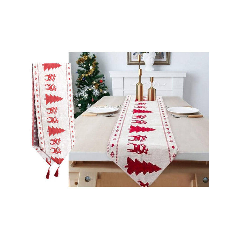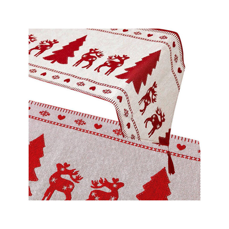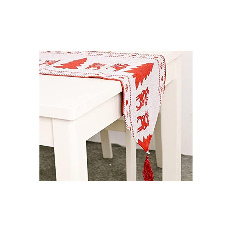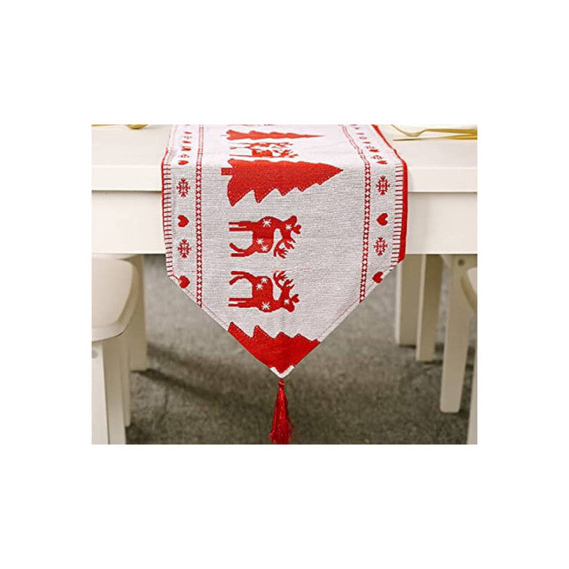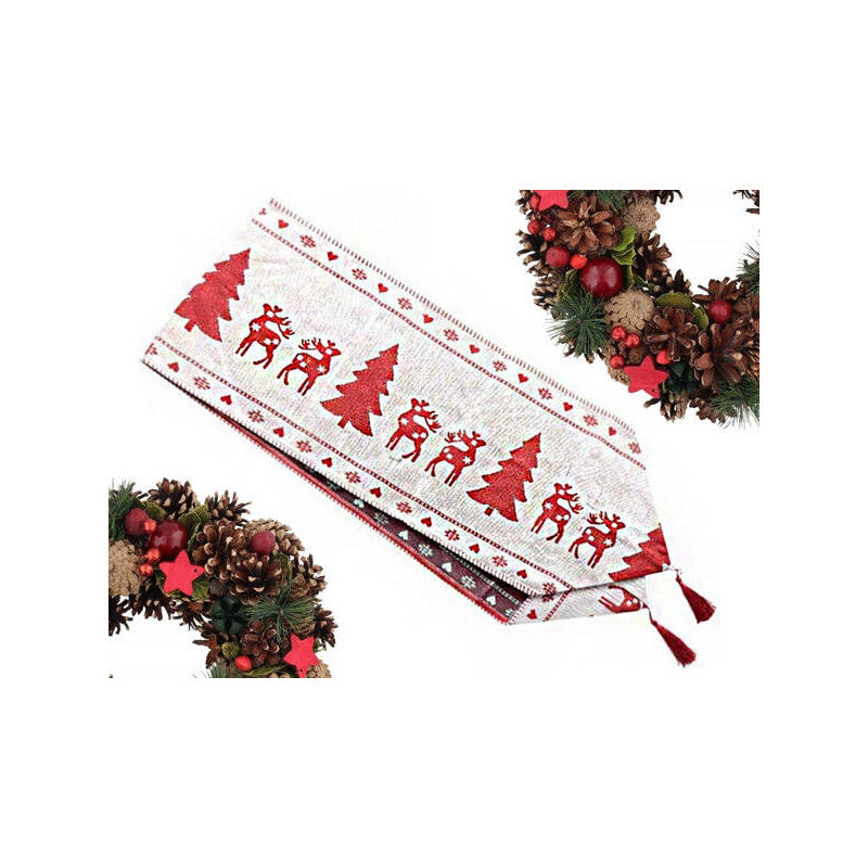 Ez a karácsonyi asztalfutó egy bájos kiegészítő lesz a karácsonyi asztalodhoz. Magas minőségű anyagokból készült, ez a gyönyörű asztalfutó eleganciát és ünnepi bájt ad az asztalodnak. Az asztalfutó tökéletes lesz az ünnepi ételekhez családoddal és barátaiddal, hozzáadva a csillogást és a melegséget. Diszkrét mintával díszített rénszarvasokkal, karácsonyfákkal, hópelyhekkel és szívekkel. Egyedi bojtokkal van ellátva. A tökéletes kiegészítője lesz egy asztalterítőnek vagy egy feltűnő kiegészítés a klasszikus fehér edényekhez. Az asztalfutó megvédi az asztalfelületet a károsodástól, foltoktól és karcolásoktól. Az asztalfutó széleit bevarrták, ami megakadályozza a szálak elszakadását, és a díszítés sok szezont fog tartani.