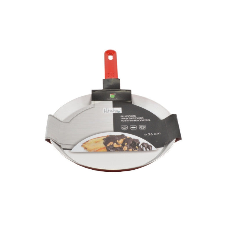 A 26 cm átmérőjű, piros színű kerámia bevonatos palacsintasütőnket a tökéletes palacsintákért terveztük. Az alumínium és műanyag anyagával könnyű és tartós, így hosszú ideig élvezheted a tökéletes palacsinták készítését.