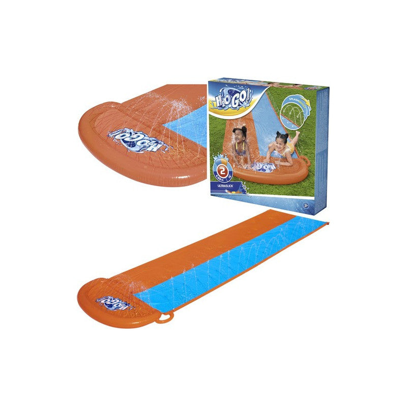 Készülj fel a nyár legjobb kalandjára a DOUBLE SLIDE / WATER SLIDE H2O GO! BESTWAY 52328 csúszdával! Ez a dupla pályás, 488 cm hosszú vízi csúszda garantáltan a nyári kerti játékok kedvence lesz. Csatlakoztasd a kerti locsolócsövet a csúszdán található zuhanyzókhoz, és már indulhat is a móka!