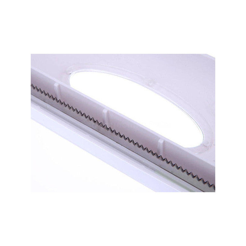 A konyhai fóliavágó egy fantasztikus eszköz, amely minden konyhában hasznos lehet. Ezzel könnyedén levághatod az élelmiszer csomagoló fóliát, reggeliző fóliát vagy alumínium fóliát egy mozdulattal. A vágó éles vágópengékkel rendelkezik, amelyek rozsdamentes acélból készültek, és mozgatható hengerrendszerrel, amelybe a kiválasztott fóliát helyezed. Nagyon könnyű használni, csak le kell nyomnod, hogy levágd a szükséges fóliadarabot. Az adagolónak elegáns a designja, így díszíteni fogja a konyhádat, és átlátszó nyílással rendelkezik, hogy ellenőrizhesd a fennmaradó fólia mennyiségét, anélkül, hogy ki kellene nyitnod az adagolót.