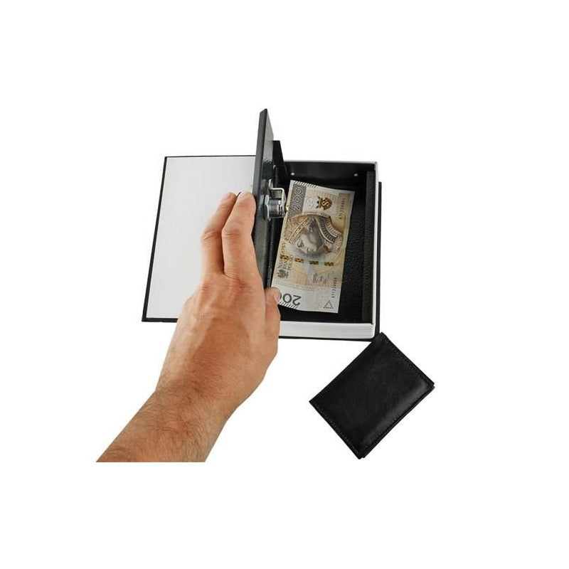 - Valódi könyv imitáció: A széf külső borítása és anyagai teljesen megegyeznek egy valódi könyvével. Első pillantásra senki sem fog rájönni, hogy ez nem egy egyszerű könyv a polcodon.