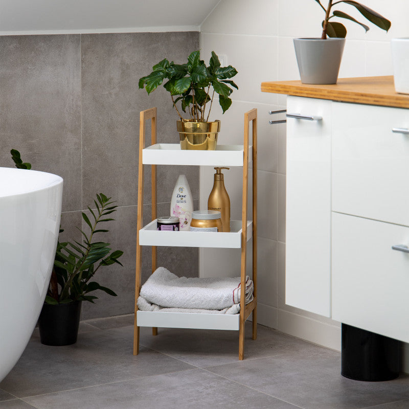 Az erős MDF-ből készült három polc könyveket, cserépben lévő növényeket, fürdőszobai kellékeket és mindenféle kisebb tárgyat képes tárolni, hogy változatosságot vigyen belső tereidbe. A polcok bemélyedtek, hogy megakadályozzák a tárgyak kicsúszását, és a három különböző méretű polc bármilyen funkcióhoz igazítható.