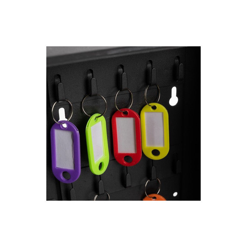 A 48 azonosító élénk színekben pompázik, így egy pillanat alatt megtalálhatod a keresett kulcsot. Csak olvasd el a címkén lévő feliratot, és már tudni is fogod, melyik kulcs hova tartozik. Az azonosítókra rövid szöveget vagy számot is írhatsz, így még könnyebb lesz a dolgod.