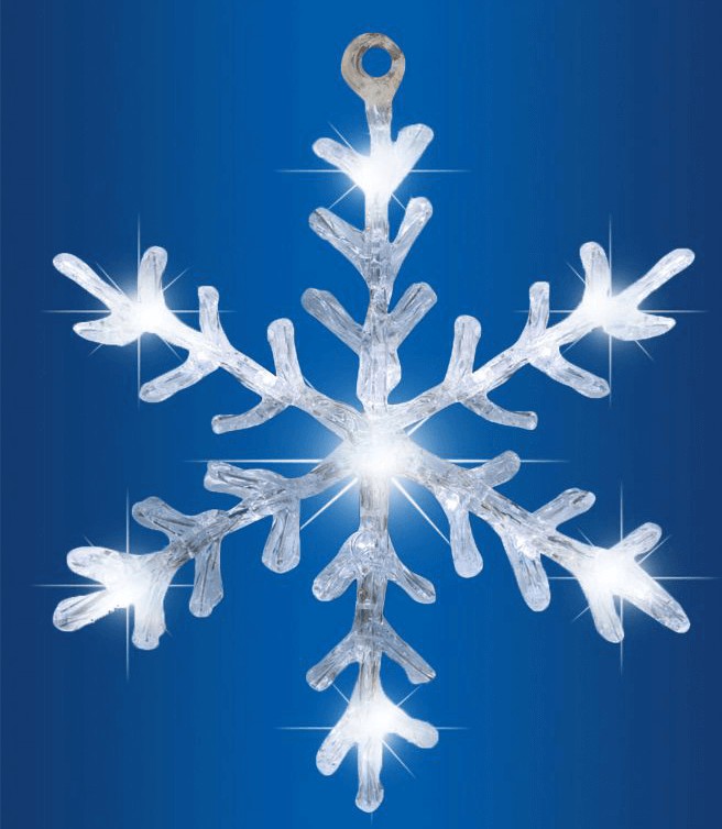 1 db LED-es hókristály ablakdíszA hókristály igazán népszerű ablakdísz forma, hiszen ez szimbolizálja leginkább a telet és a karácsonyi ünnepeket. Ez az ablakdísz világítását összesen 16 db hidegfehér LED biztosítja. A dísz ideális kiakasztásához 50 cm-es hosszúságú vezeték tarozik. A hókristály alapanyagát átlátszó akril képezi. Tápellátása elemmel oldható meg.