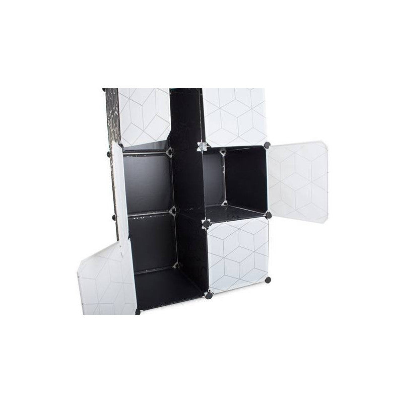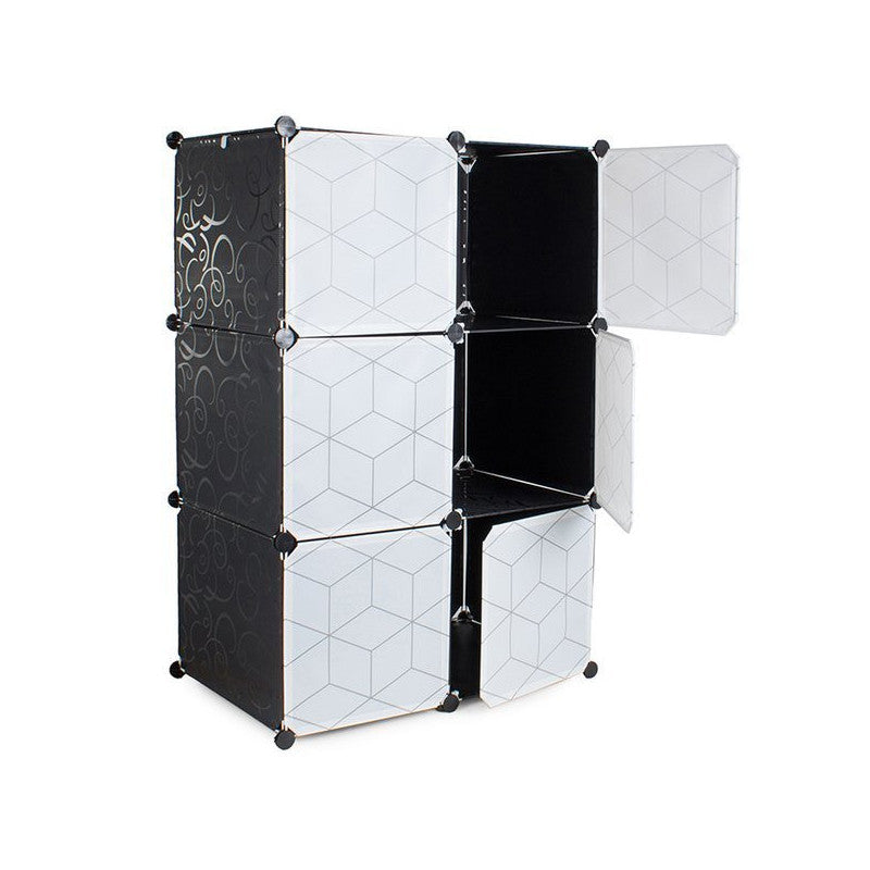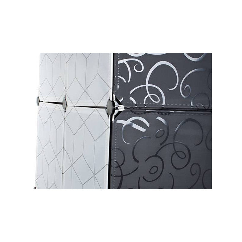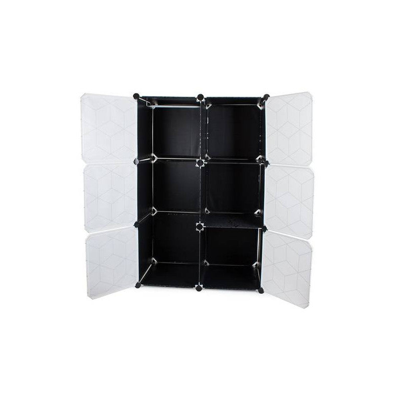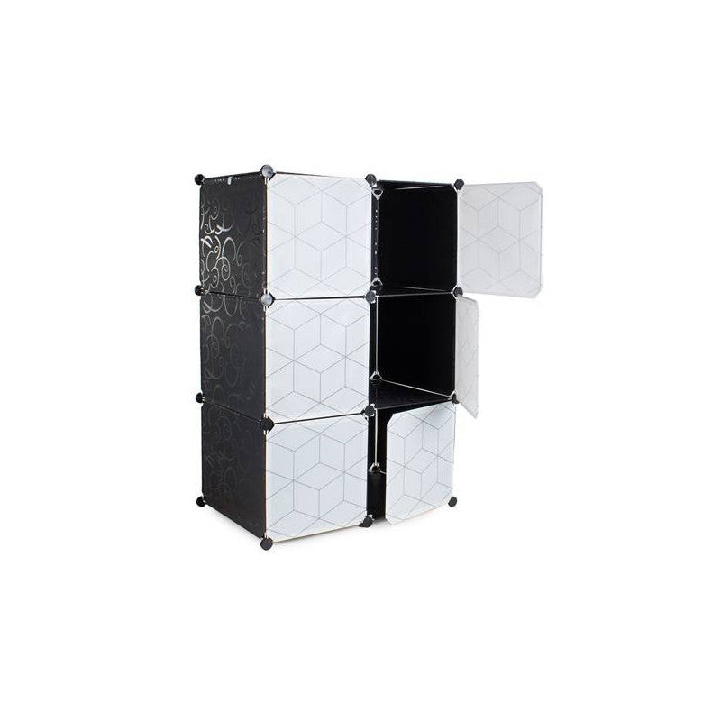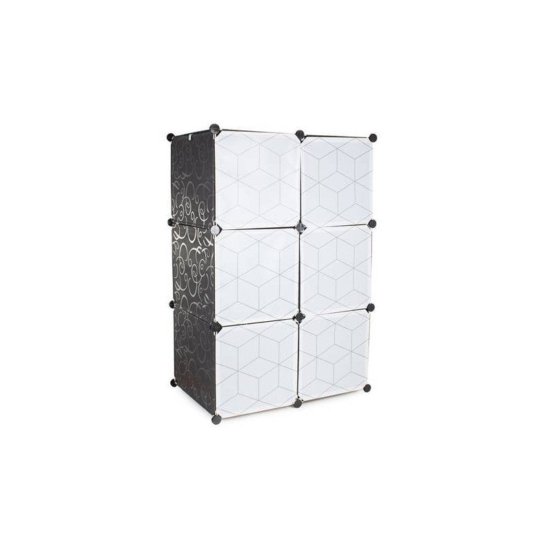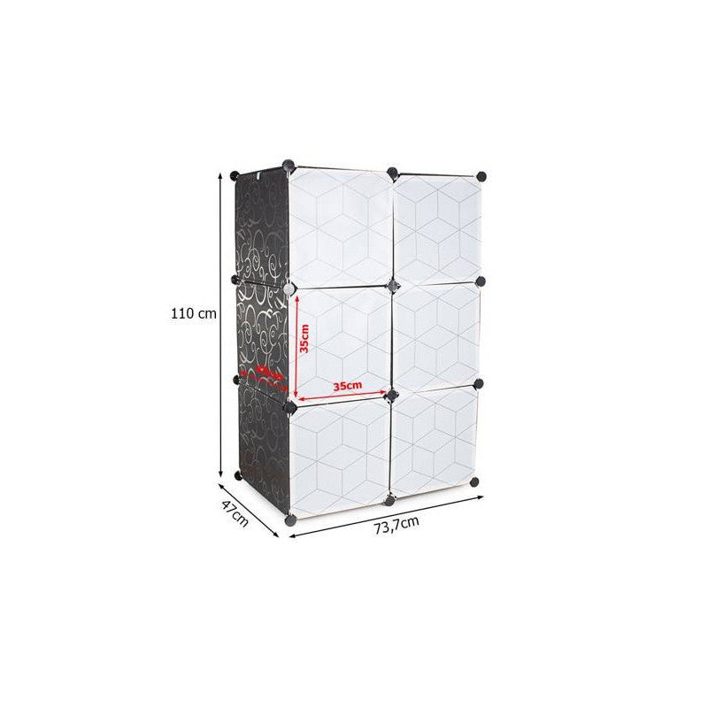 Ez a moduláris ruhásszekrény tökéletesen illeszkedik egy öltözőszobába vagy előszobába. Emellett jól működik egy vállalatban vagy irodában is. A szekrénynek nagyon esztétikus a design-ja egy szép mintával, így bármelyik otthonba tökéletesen illeszkedik. 6 szegmensből áll, melyek összeállíthatóak és egymásra helyezhetőek, illetve egymás mellé is helyezhetőek attól függően, hogy mi a szükséglet és rendelkezésre álló hely. Az egyik része a szekrénynek akasztós ruhák tárolására használható, mivel felszerelték egy rudat a fogasok felakasztásához. Emellett könnyű és stabil.