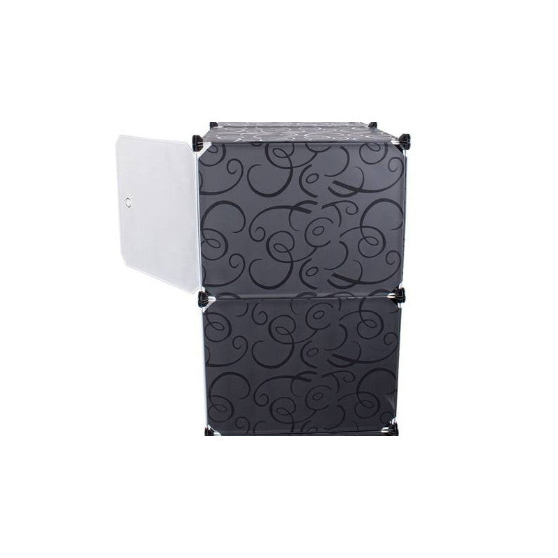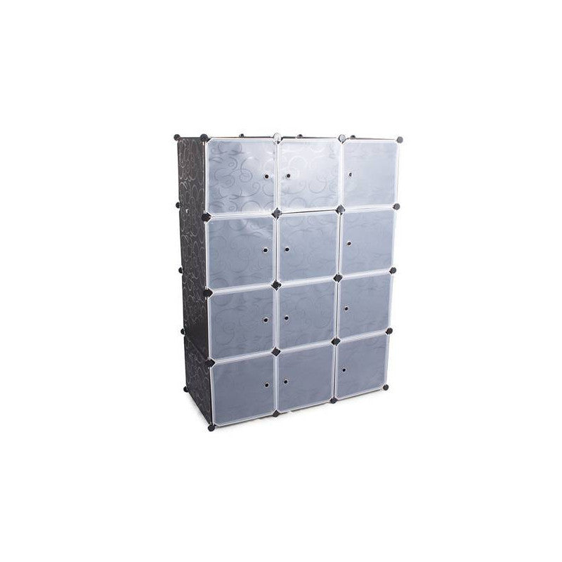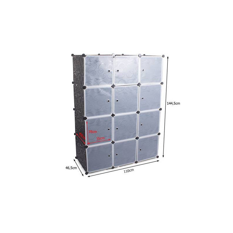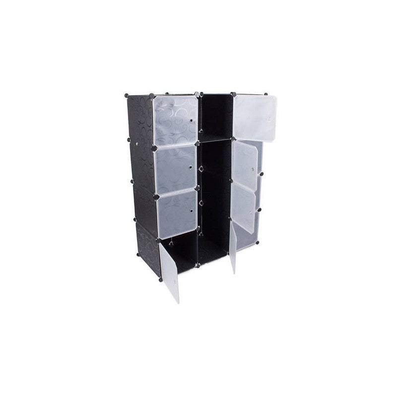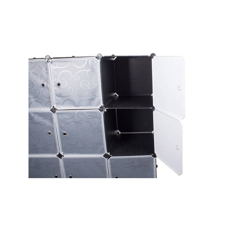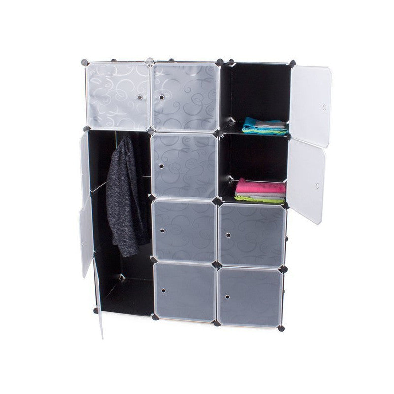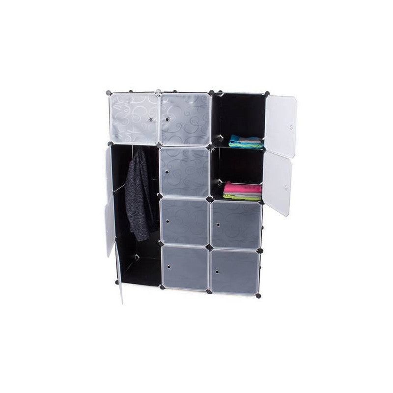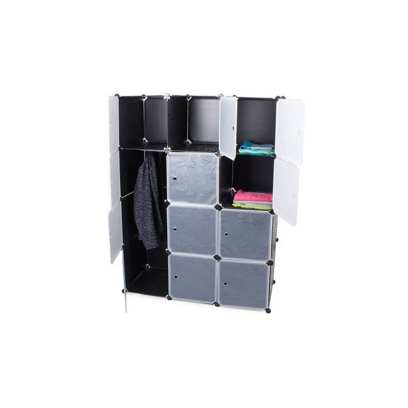 A moduláris ruhásszekrény tökéletesen illeszkedik otthon a hálószobában vagy előszobában. Emellett jól működik egy vállalatnál vagy irodában is. A szekrény rendkívül esztétikus kialakítású, így bármely otthon stílusába illeszkedni fog. A szekrény 12 szegmensből áll, amelyeket egymásra lehet halmozni, valamint egymás mellé helyezni az igényeid és rendelkezésre álló tér szerint. Az egyik rész a ruhák felakasztására használható, mivel felszerelték egy rudakkal a vállfák felakasztásához. A szekrénynek 12 ajtaja van, amelyeket a vállfakkal ellátott részbe lehet felszerelni vagy nyitva lehet hagyni. Emellett 9 zárható ajtóval rendelkező polccal van felszerelve. A moduláris felépítésének köszönhetően nagyon könnyű összeszerelni. Csak a fém vázakat kell helyesen csatlakoztatni a csatlakozókkal. A szekrénynek fehér ajtaja van, amelyet úgy lehet felszerelni, hogy szükség esetén jobbra vagy balra nyíljon. Az anyag, amelyből a szekrény készült, vízálló és könnyen tisztítható.