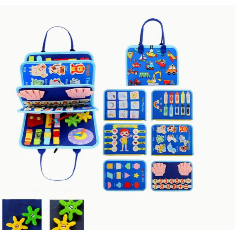 Van egy ötletünk a számodra! A Montessori 7 az 1-ben tanulótáska tökéletes választás, amelyet arra terveztek, hogy hordozható és gazdagító tanulási élményt nyújtson gyermeked számára. A 8 interaktív és eltávolítható oldallal ez a csodák bőröndje sokféle tevékenységet kínál a gyermekek elköteleződéséhez, szórakoztatásához és tanulásához!
