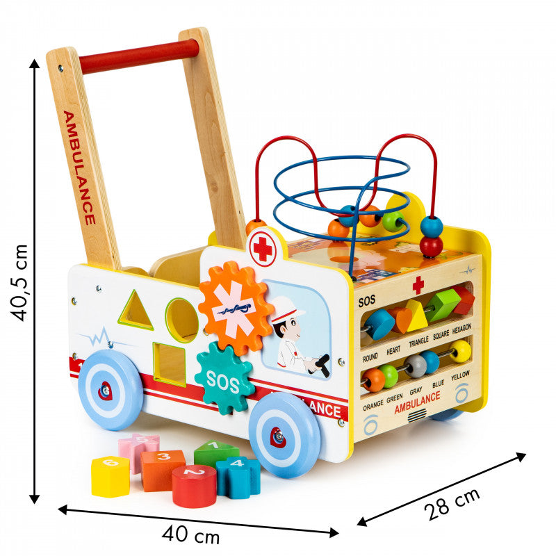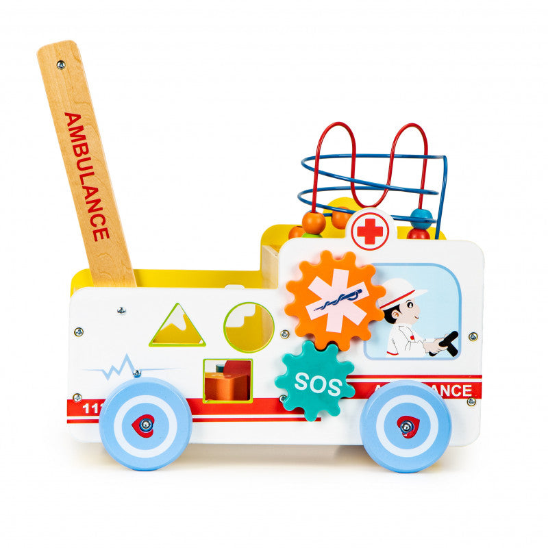 Okosító fa tologató Mentőautó 2 az 1-ben kockával + építőkockákkal
