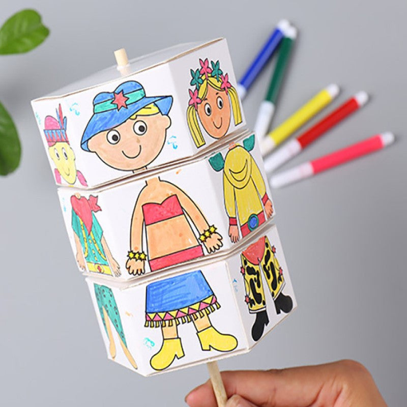 Az elkészült részeket összehajtogatva és megragasztva már csak a pálcikára kell ráilleszteni és együtt megcsodálhatjátok a különböző öltözeteket.