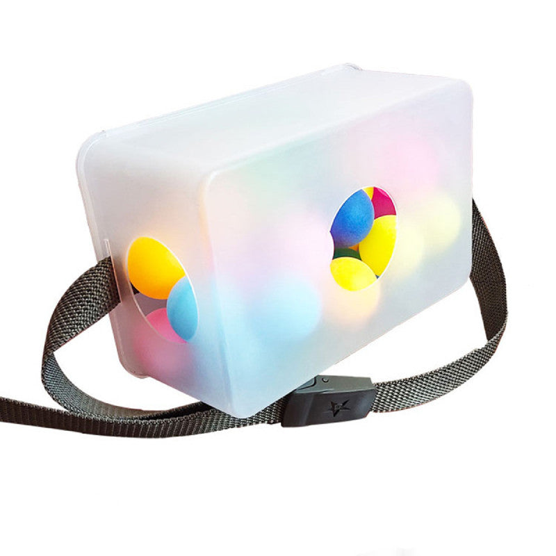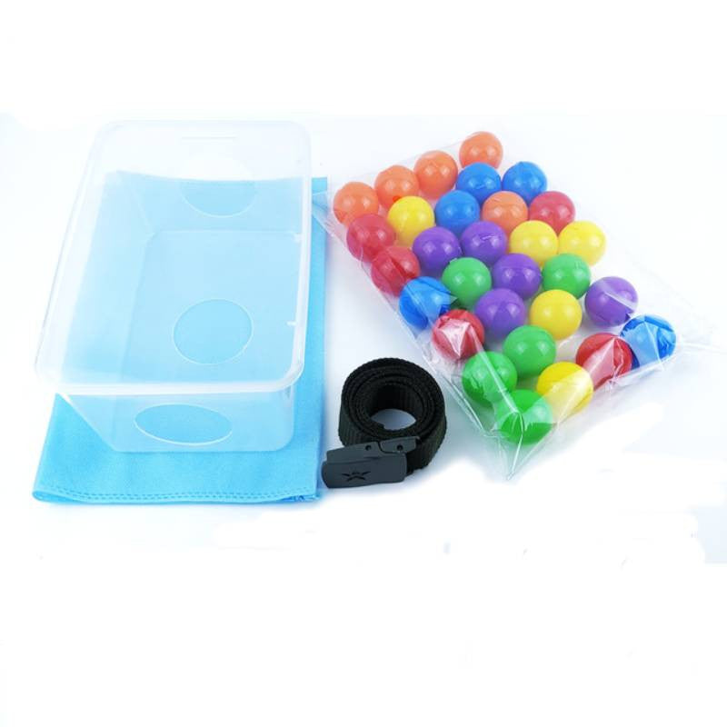 A játék menete: Csatolj magadra egy dobozt tele labdákkal, ugrálj addig, amíg ki nem esik az összes színes golyó a dobozodból.