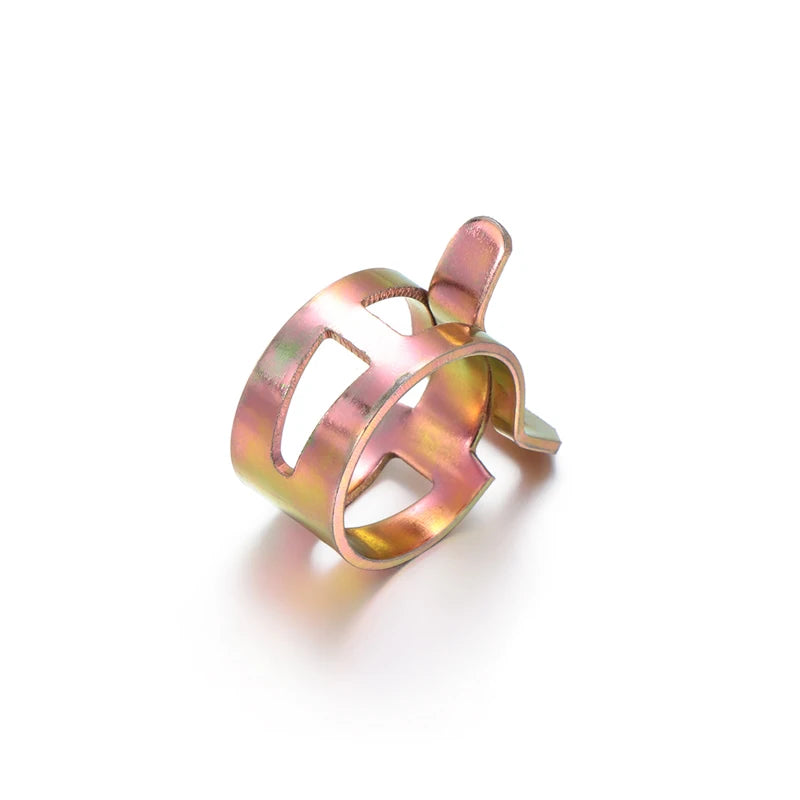 Kiváló minőségű ötvözött acélból készült, mely rendkívül tartós. Belül sima és nem vágja el a csövet a felhelyezésekor.