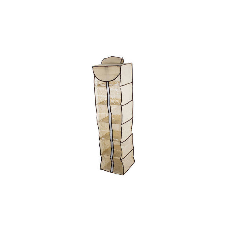 A FÜGGŐ SZERVEZŐ ZÁRÓVAL 6 polccal 30x30x120cm függő polc hatékonyan megmenti a helyet a szekrényedben. Hat polc szintje lehetőséget ad arra, hogy szabadon szegregálhasd a ruháidat, miközben kevés helyet foglal el. A szervező rendben tart és tökéletesen megvédi a ruháidat és ágyneműidet a por és egyéb külső tényezők ellen. Ezenkívül cipzárral záródik, ami jobb védelmet nyújt a por ellen. Magas minőségű anyagból készült, ami hosszú éveken át tartó használatot garantál.