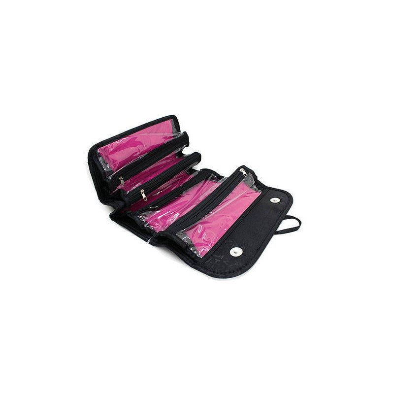 A gördülő sminktáska a tökéletes megoldás arra, hogy rendben tartsd a kozmetikumaidat. Biztosan elfér benne minden, mint a púder, ceruzák, rúzsok és egyéb kiegészítők. Kicsi mérete miatt, amikor feltekered, ideális női kézitáskába vagy utazótáskába. A szervezőnek 3 tágas zsebe van cipzárral. Emellett a sminktáskának van fogantyúja, így a kinyitott sminktáskát fel lehet akasztani egy fogasra a fürdőszobában vagy egy ajtóra.