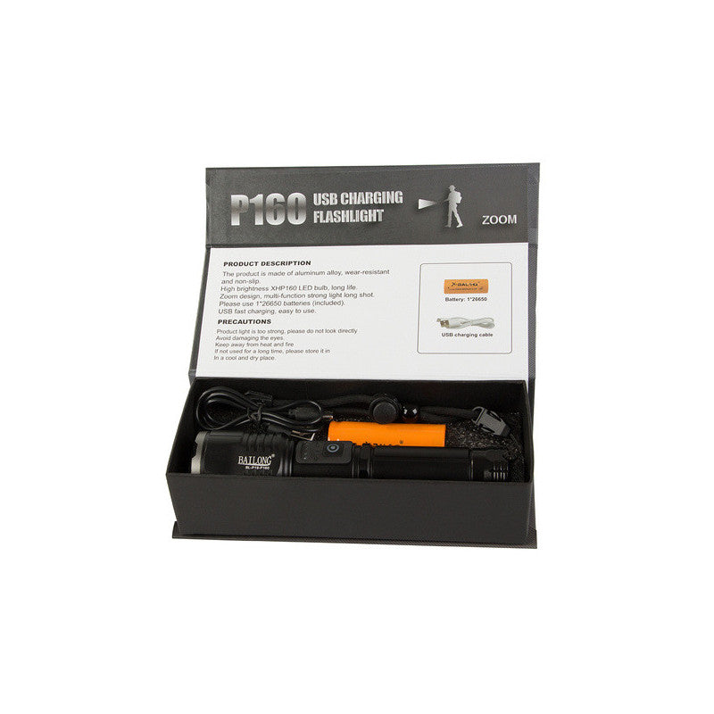 - (Készlet tartalma): A doboz tartalmaz mindent, amire szükséged lehet, beleértve a zseblámpát, az akkumulátort, a csuklópántot, a USB kábelt és az eredeti csomagolást.
