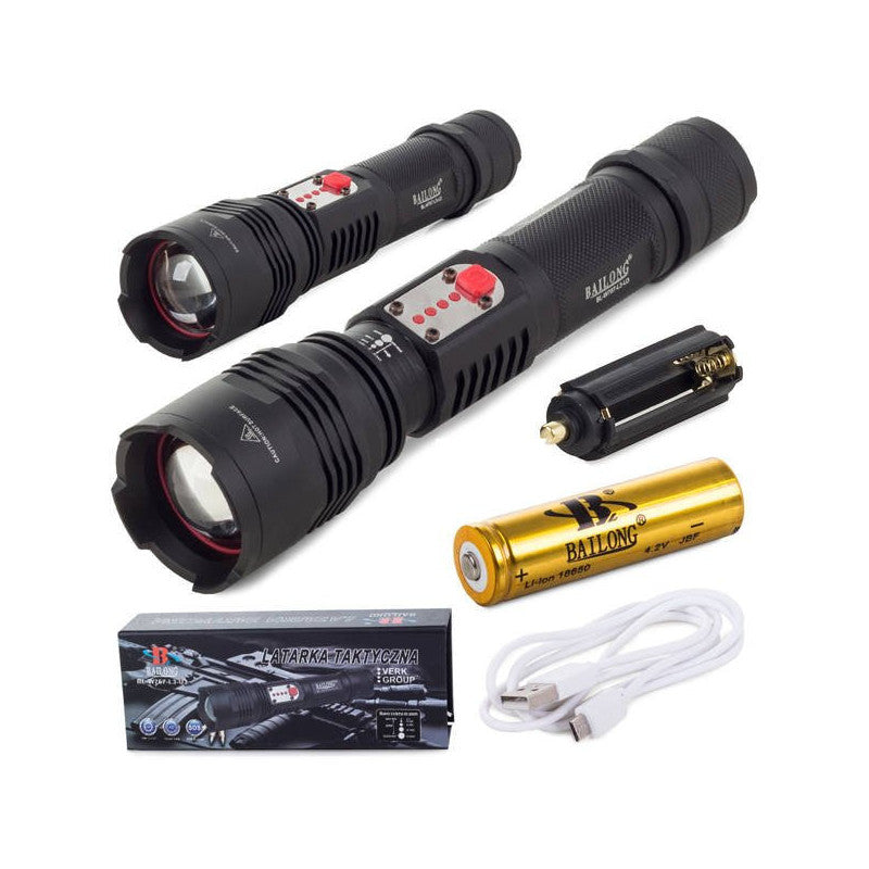 Taktikai zseblámpa Bailong Cree LED-del és USB töltéssel