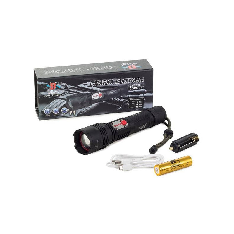A Bailong® W767 katonai taktikai zseblámpa a legjobb választás, ha extrém helyzetekben kell fényre van szükséged. A kiváló minőségű alumíniumból készült test és a CREE XM-L T6 LED dióda biztosítja a hosszú élettartamot és a nagy teljesítményt. A zoom funkcióval könnyedén beállíthatod a fénysugarat a szükségleteid szerint. A beépített lítium-ion akkumulátor USB-n keresztül tölthető, és még power bank funkcióval is rendelkezik.