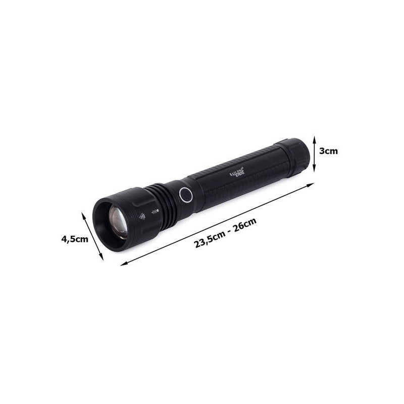 Taktikai zseblámpa erős zoom Cree XHP50 LED-del - Vadász, túrázó, outdoor, táborozó, biztonság, túlélő felszerelés