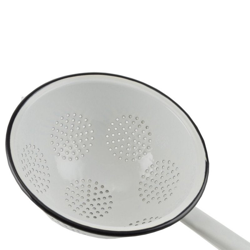 Az ellenálló és tartós zománcozott vasból készült tésztaszűrőnk tökéletes választás az otthoni főzéshez. Praktikus mérete, 18 cm átmérővel és 9,5 cm mélységgel rendelkezik, amely lehetővé teszi a különféle tésztafajták egyszerű és hatékony leszűrését. A hosszú nyélnek köszönhetően pedig kényelmesen és biztonságosan mozgathatod a tésztát.