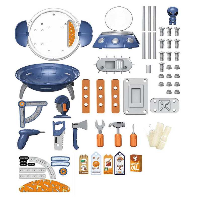 UFO játék szerszámkészletünkkel valódi galaktikus élmény lesz csemetédnek a barkácsolás. 52 db játék szerszám és egy projektor teszi lehetővé a felhőtlen szórakozást. Bekapcsolás után az űrhajó tetejében lévő vetítő kivetíti az égitesteket, mely segítheti gyermeked fantáziájának fejlesztését, valamint a játékos tanulást is.