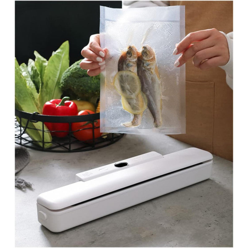 Kompakt kialakítás: Ez a vákuumcsomagoló gép 10 darab zárózsákkal, felhasználóbarát. Az összmérete és könnyű kialakítása könnyű tárolást és mozgatást tesz lehetővé, értékes helyet takarít meg a konyhában a tárolás során, csökkenti az élelmiszer-számlát és soha többé nem pazarolja el a maradékokat. Alkalmas vákuumozó táskák és tekercsek használatára.